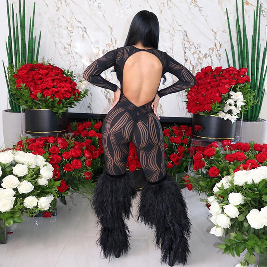 Women's Fashion Hollowed-out See-through High Waist Back Jumpsuit