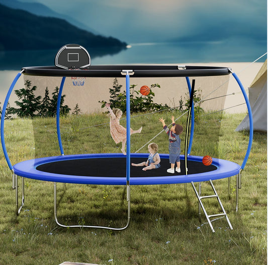 14 FT Pumpkin-Style Trampoline with Basketball Hoop – Heavy-Duty Design, Safe & Fun for Kids