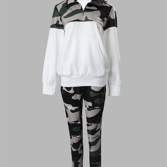 Fashion Camo Print Top Suit