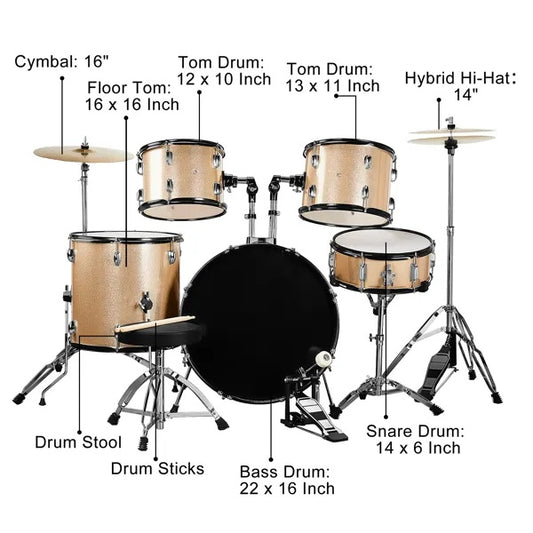 Full Size Drum Set 5-Piece Two Tom Drum, Snare Drum, Floor TomRegular price $599.99Regular priceUnit price / per-