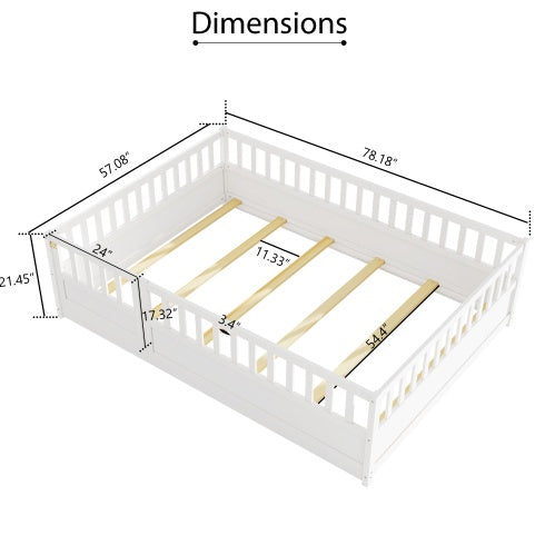 Full Size Floor Bed, Integral Construction With Super High Security Barrier, Door, Children's Floor Bed Frame, Montessori Wooden Children's Floor Bed, Support Slat WhiteRegular price $599.99Regular priceUnit price / per-
