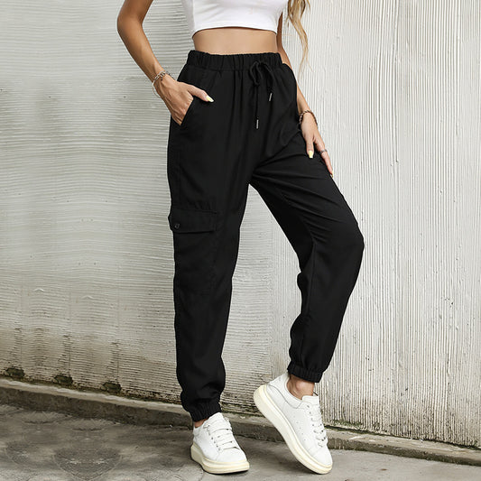 Long Solid Color Casual Elastic Ankle Banded Pants