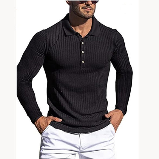 Men's Running Sports Fitness High Stretch Striped Long Sleeve POLO Shirt