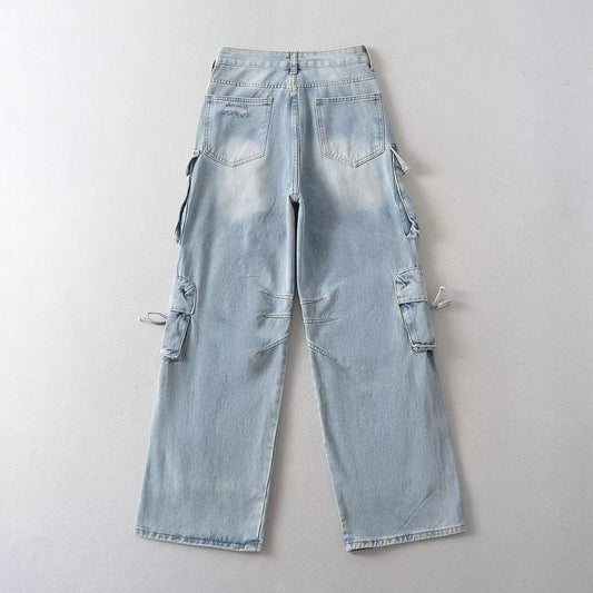 American Multi-pocket Workwear Jeans Men's Wide Leg Loose Plus Size