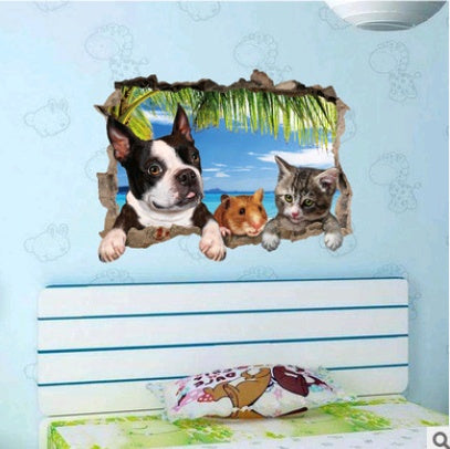 3D animal landscape wall personality creative bedside porch sofa TV background decorative wall stickers