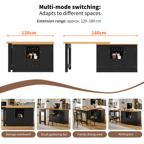 360 Rotation, Bar Table Main Body 120-180 X 40 X 76 Cm, Coffee Bar Furniture, Rotatable Dining Bar With Storage, Kitchen Island, Double Doors With Wine Rack, Adjustable Shelves, Open Storage Space