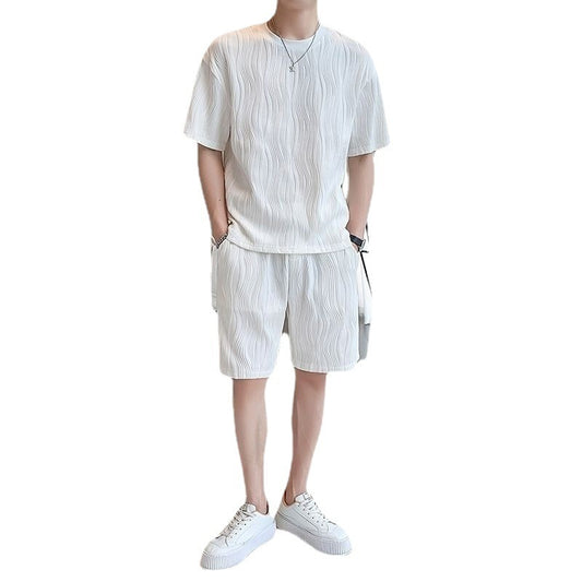 New Men's Ice Silk Fashion Short Sleeve Shorts Set