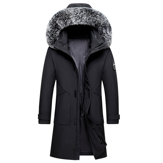 Fox Fur Collar Men's Coat Hooded Men's Clothing Mid-length Down Jacket Warm Cold-resistant Coat