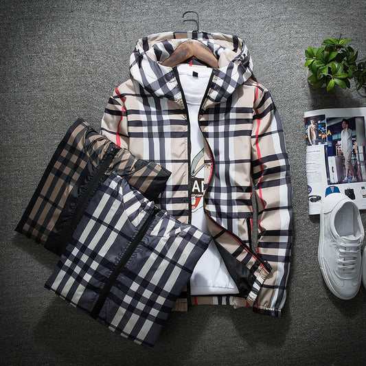 Hooded Clothes All-match Spring Men's Plaid Jacket