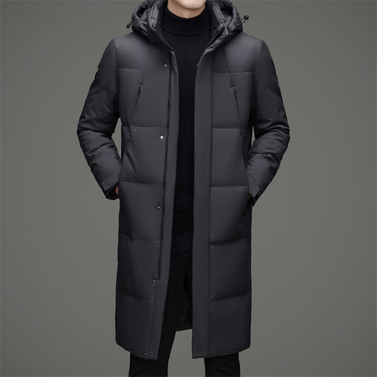 New Thick Warm White Duck Down Detachable Hat Men's Mid-length Down Jacket