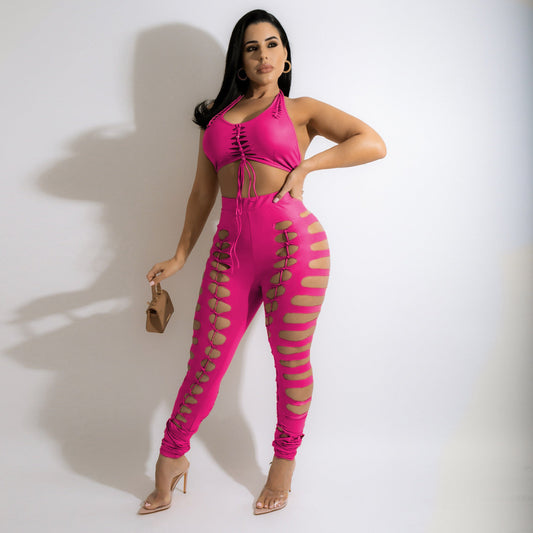 European And American Style New High Waist Tight Thread Sleeveless Casual Sports Jumpsuit