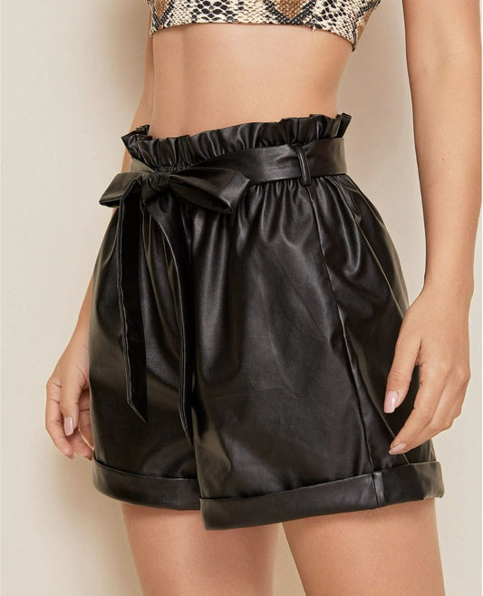 Women's Autumn And Winter Matching PU Pantskirt Shorts