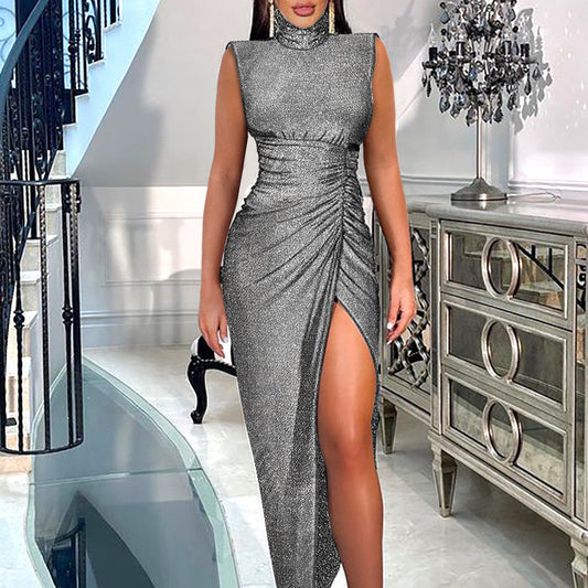 Women's Wide-shoulder Sleeveless Pleated Long Skirt