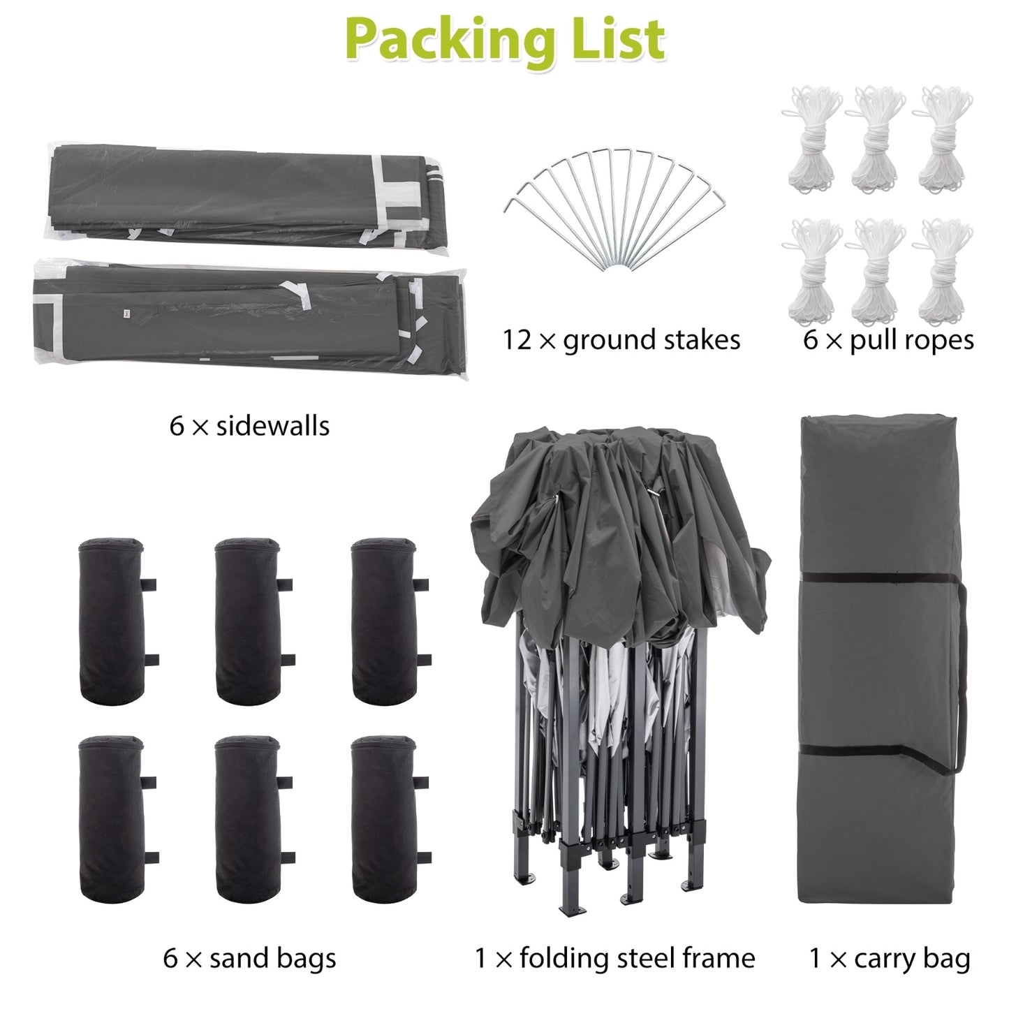 10'x20' EZ Pop Up Canopy Outdoor Portable Party Folding Tent With 6 Removable Sidewalls Carry Bag