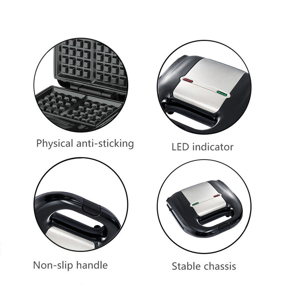 7-in-1 Sandwich Maker & Donut Machine – Semi-Automatic Multi-Function Electric Grill, Waffle, Panini, and Dessert Maker, 750W, Black