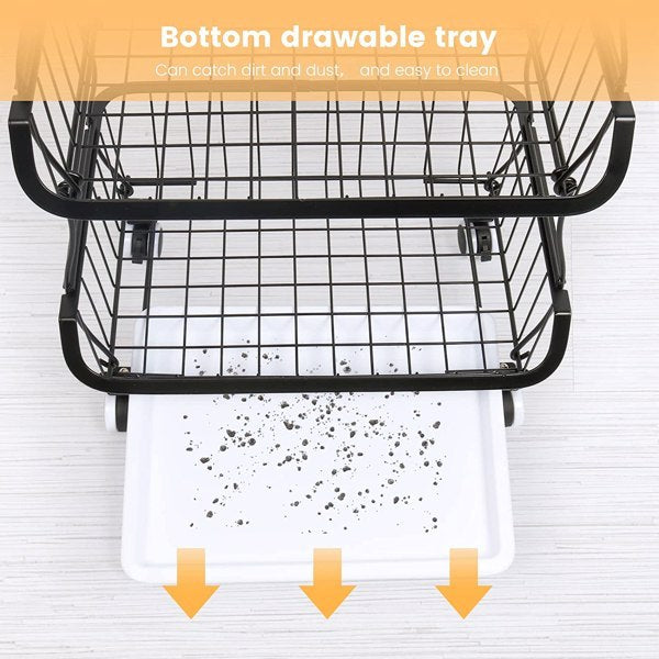 It can be conveniently placed in kitchens, dining rooms, living rooms, or offices. This fruit and vegetable basket with wheels provides additional counter space for kitchen utensils such as pots, toasters, or cutting boards. This vegetable storage basket is made of thick coated metal material. Stackable kitchen storage boxes provide high load-bearing capacity - durable, rust resistant, and long-lasting. Each layer basket can be used separately or stacked together for storage and space saving.