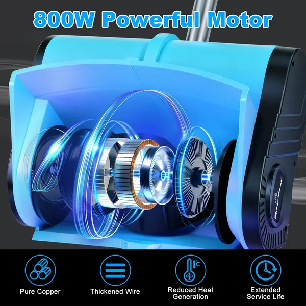 *Effortless Snow Removal*:Built in 800W powerful motor,this cordless snow shovel clears a 11in wide and 6.3in deep path,capable of throwing snow up to 26ft for effortless snow removal.