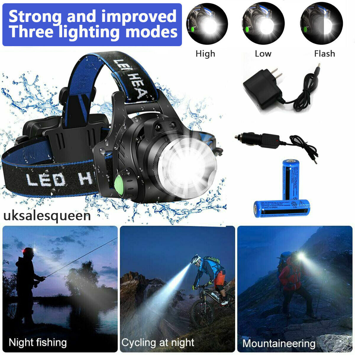 990000LM Rechargeable LED Headlamp Zoomable Torch Tactical Headlight Flashlight