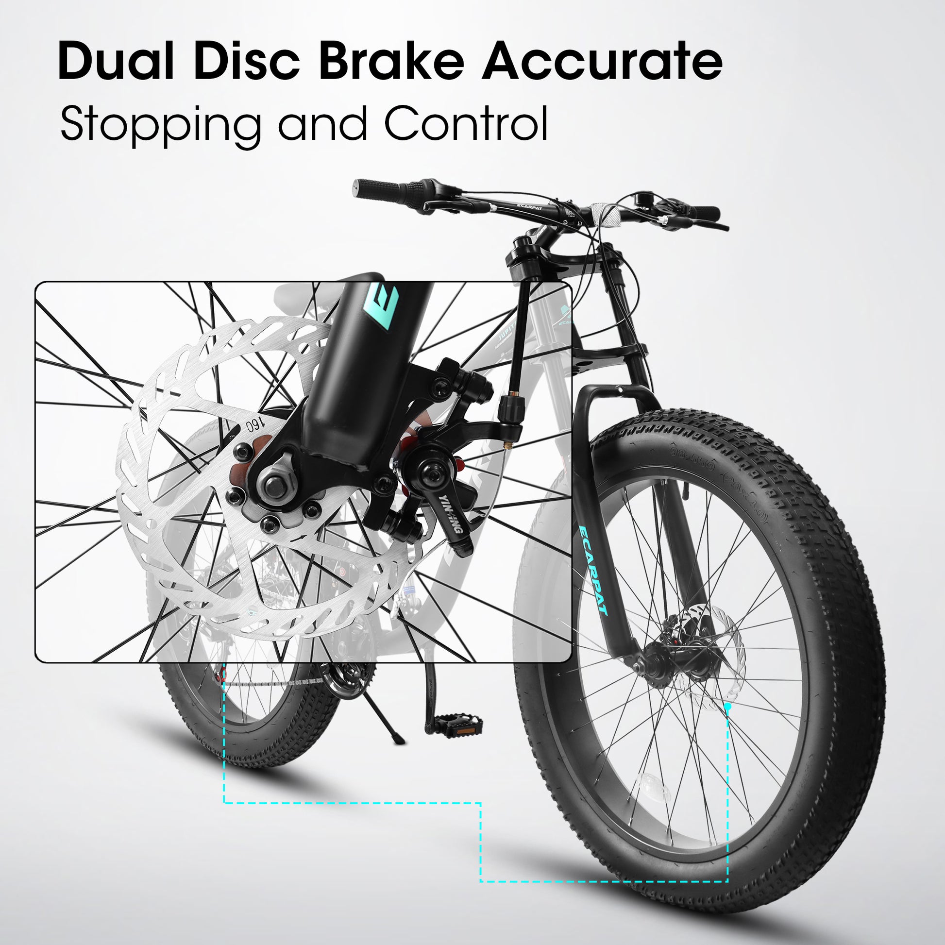 【4 INCH FAT TIRE】Width up to 4 inches, 5 times more wear resistance than ordinary bicycle tires. Strong grip and anti-skid, fully able to challenge any terrain, conquer any off-road trails and urban roads.