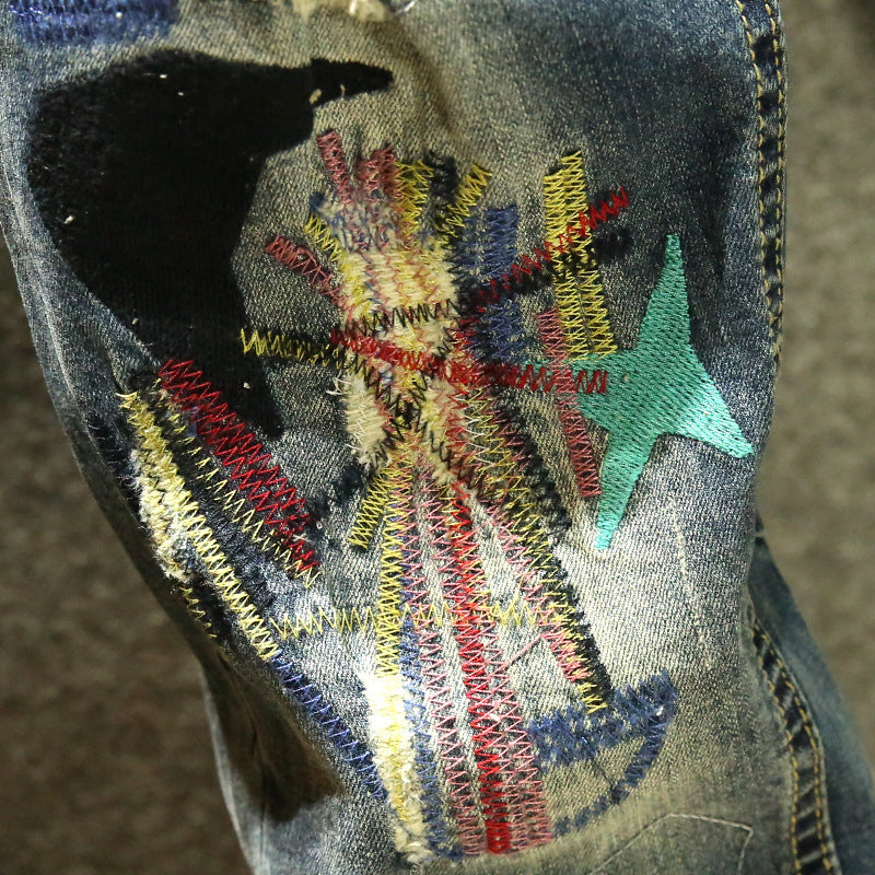 Blue Ripped Jeans Men's Tide Brand Patch Patch Korean Youth