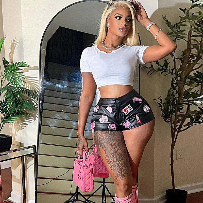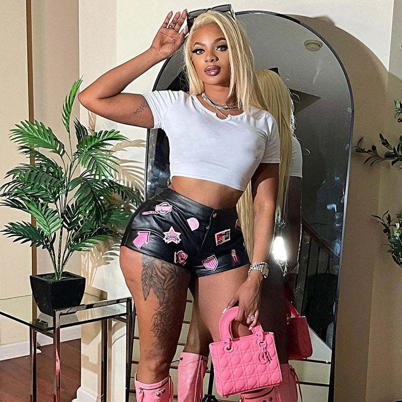 Bum Lift Shorts Slim-fit Labeling Short Leather Pants