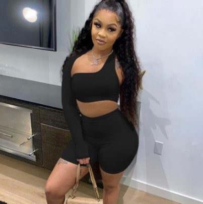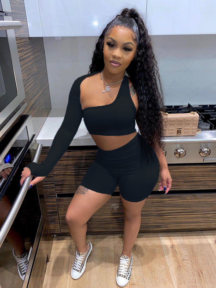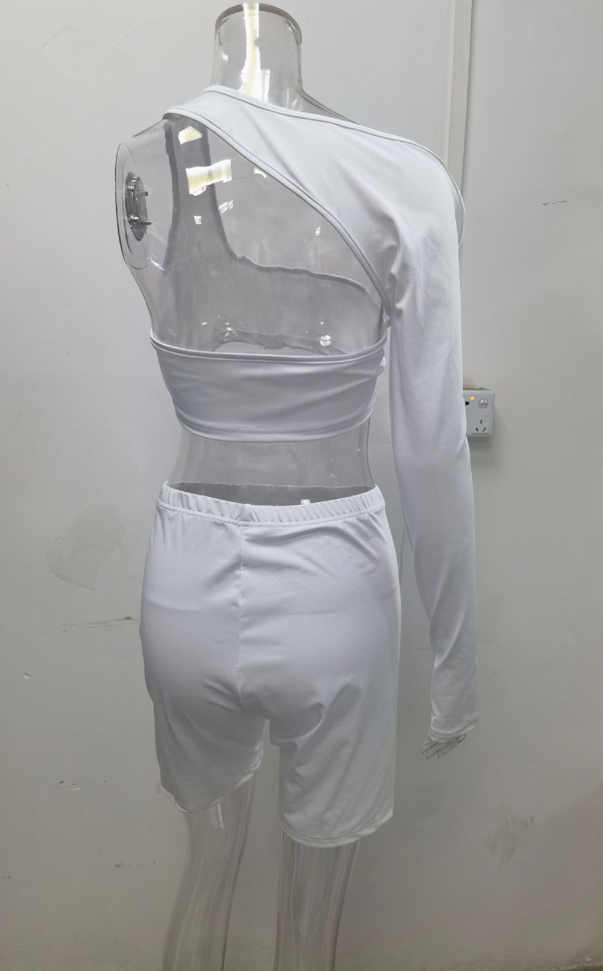 Cutout Sports Long Sleeve Shorts Two Piece Set