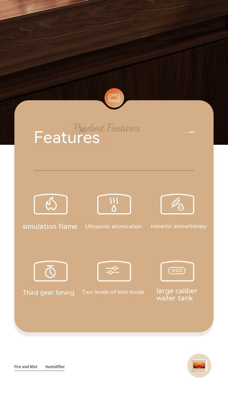 Desktop 3D Fireplace Simulation Flame Aroma Diffuser Household Hotel Usb Air Humidifier