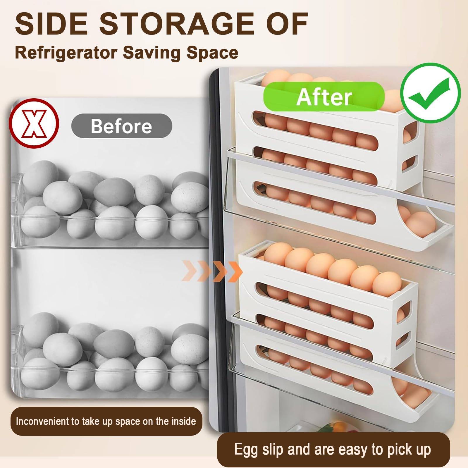 Egg Holder For Fridge - Auto Rolling Fridge Egg Organizer, Egg Dispenser Holder