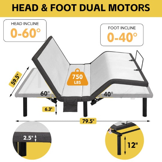 - Independent Head & Foot Incline: Adjust head and foot angles separately for personalized comfort