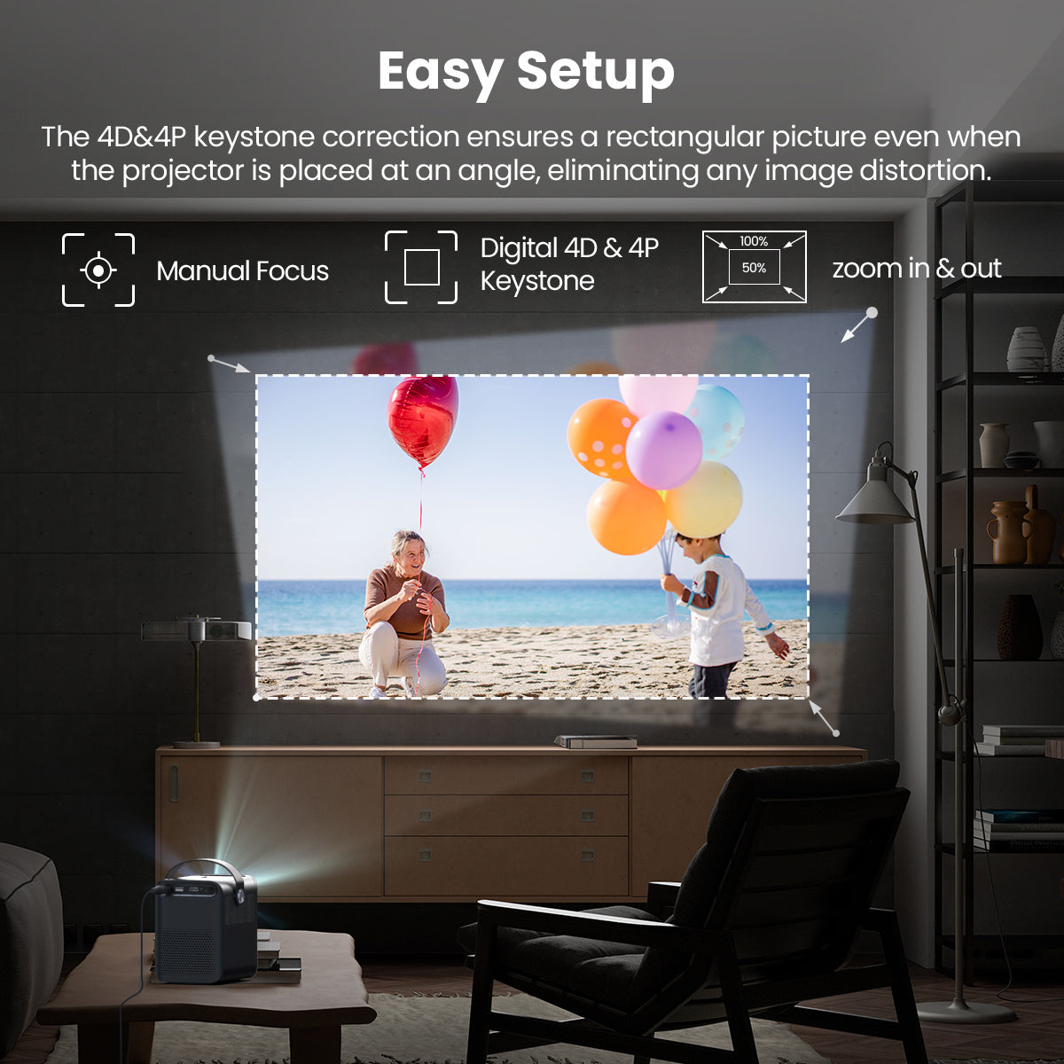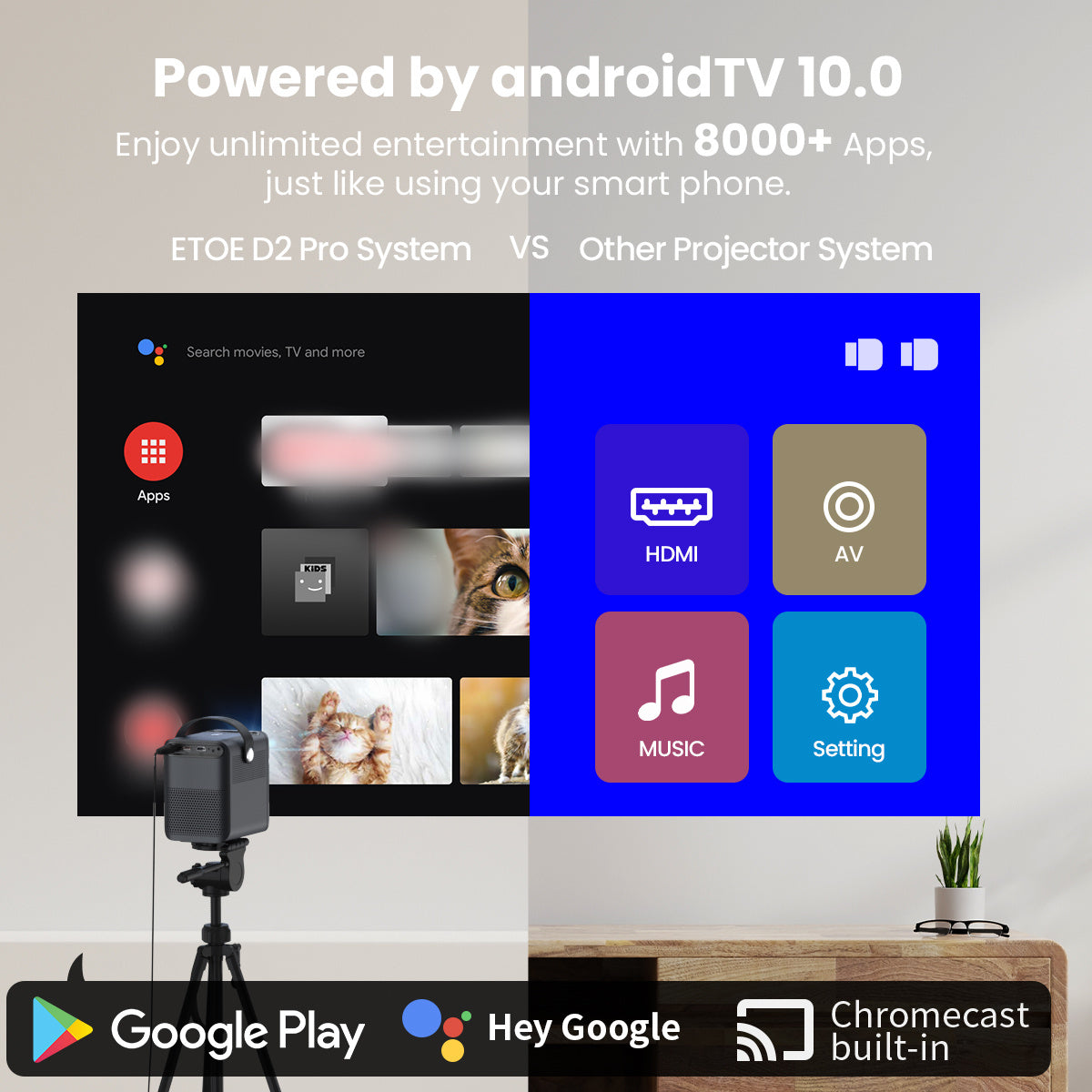 ETOE Smart Projector 1080P With Android TV 10.0, Netflix Certified, 5G WiFi Bluetooth, Wireless Chromecast, Movie Projector Compatible With IOS, Android, HDMI, Fire TV Stick - D2 Pro