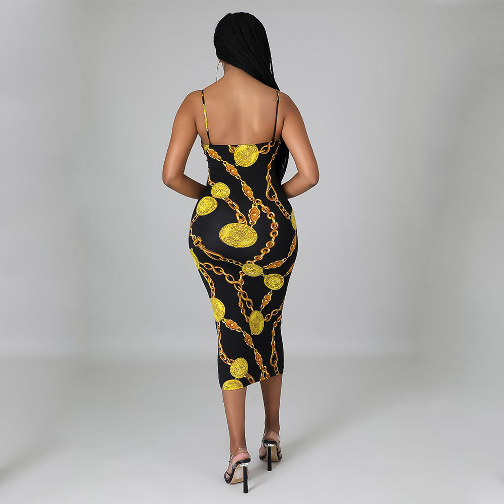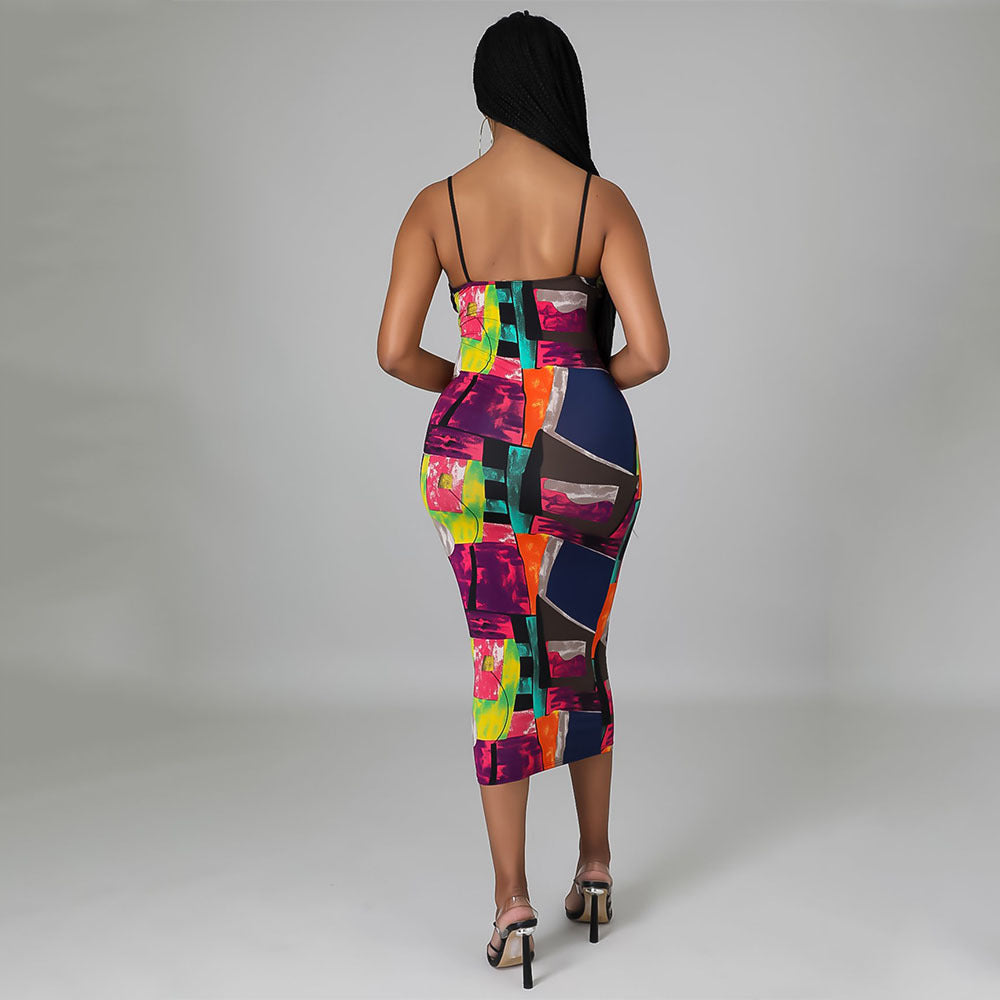 Fashion Sexy Digital Print Suspender Dress