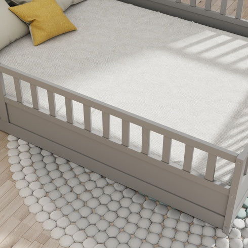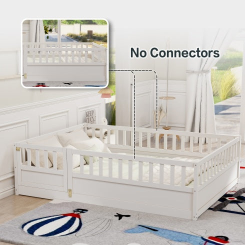 Full Size Floor Bed, Integral Construction With Super High Security Barrier, Door, Children's Floor Bed Frame, Montessori Wooden Children's Floor Bed, Support Slat White