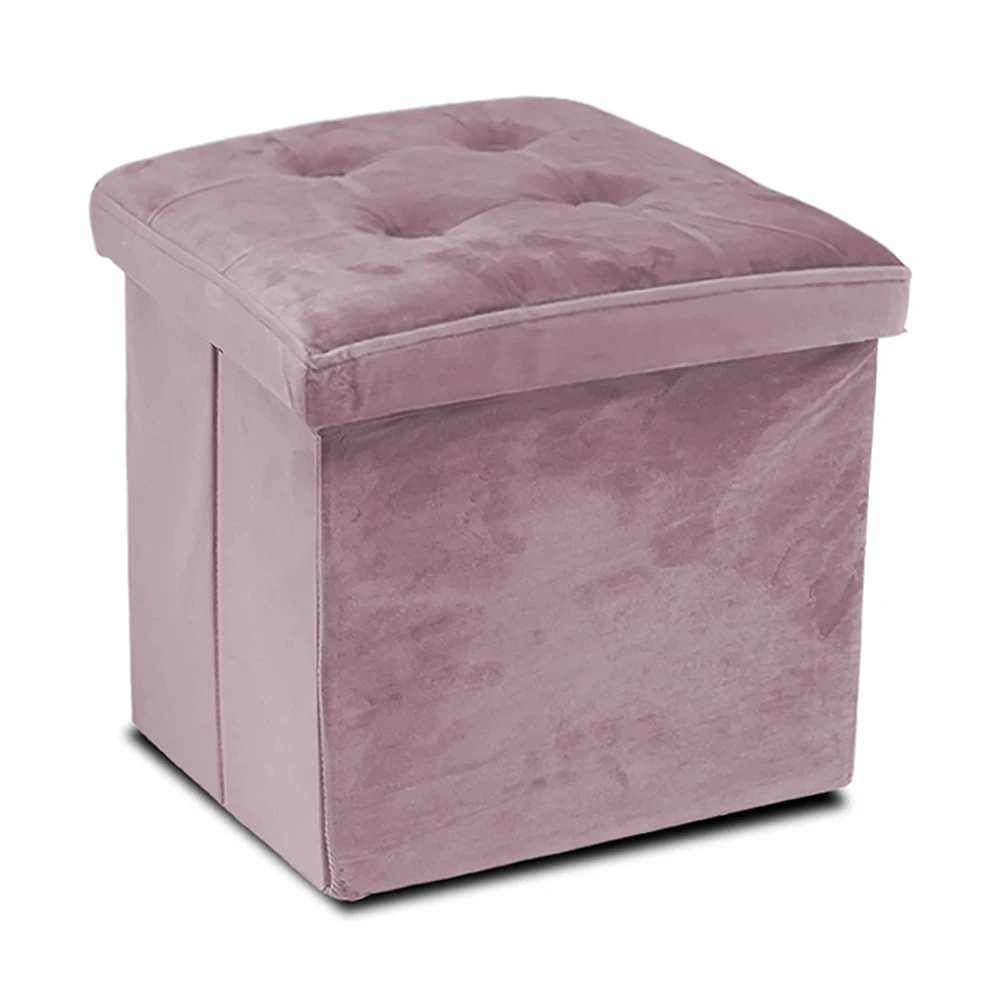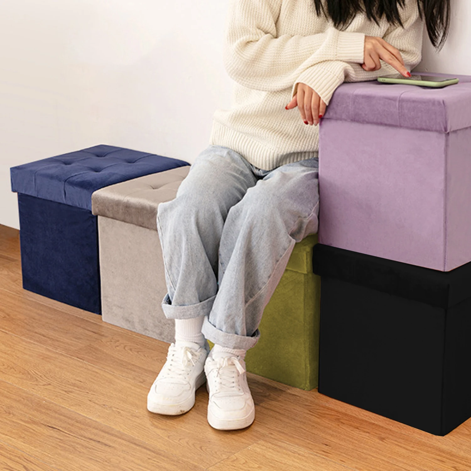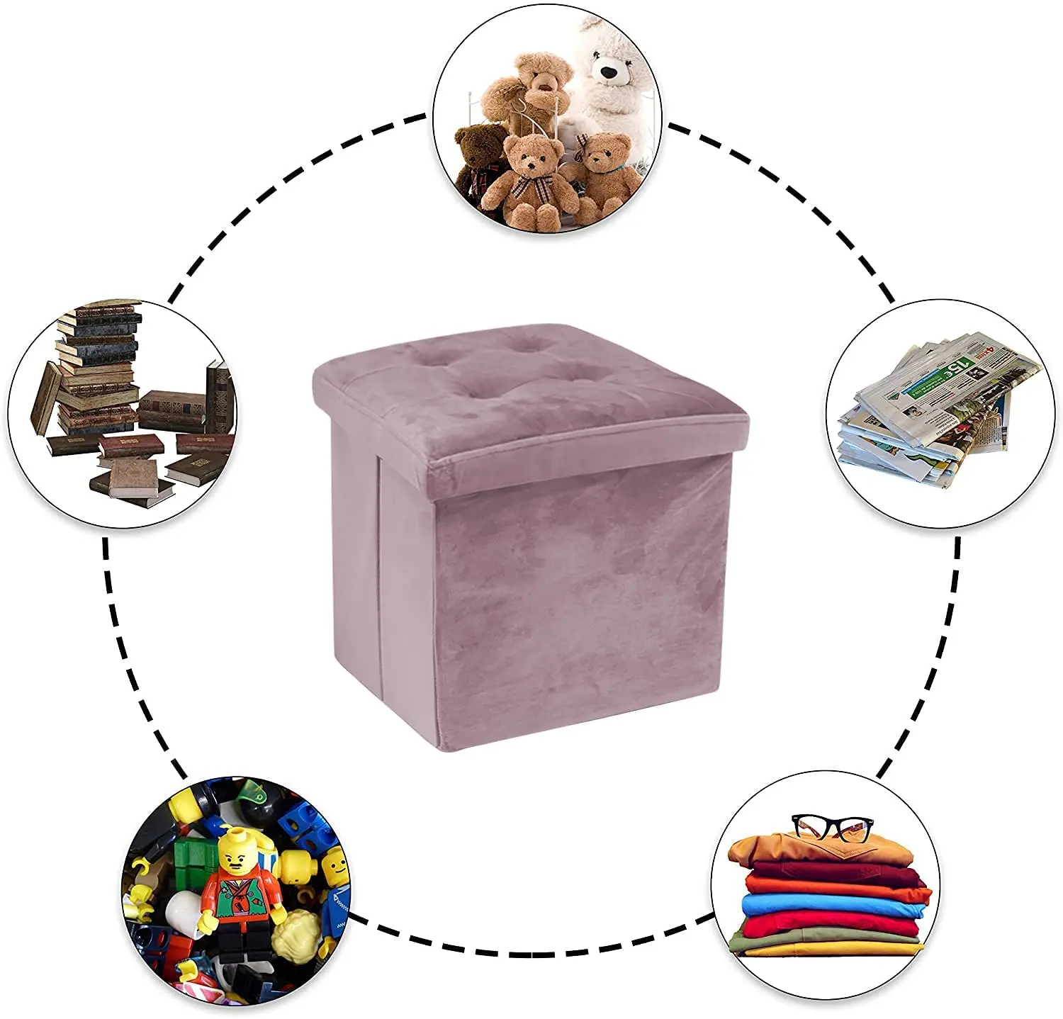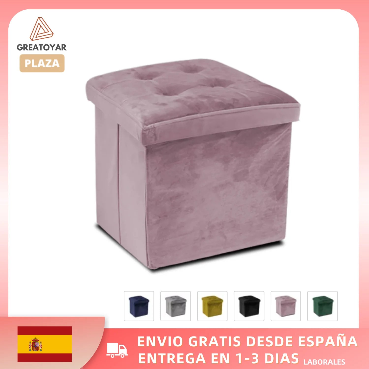 Greatoyar Puff Folding Storage Stool, Ottoman Bench Seat, Small Folding Tables, Toy Storage Box, Auxiliary Furniture, Bedroom Low Table, Velvet, 38X38X38 Cm, Blue/Gray/Black/Pink