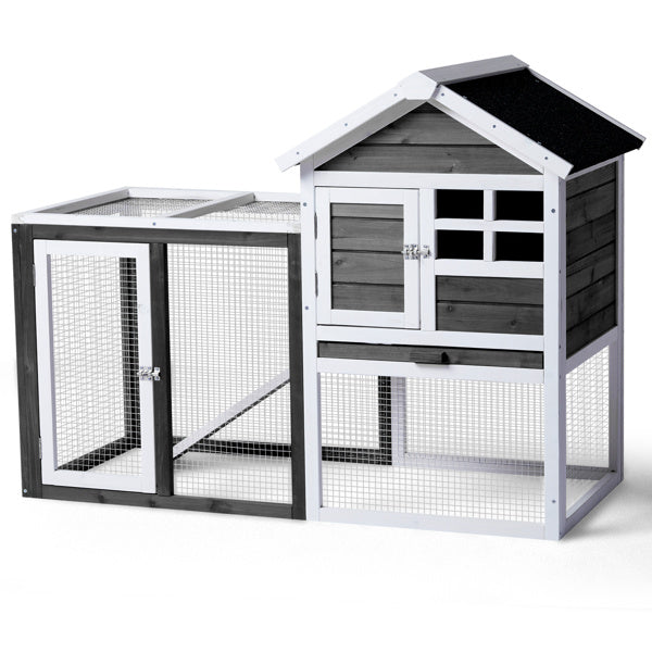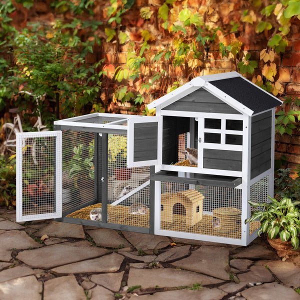 House Type With Ladder Gray Fir Wood Chicken Rabbit Cage