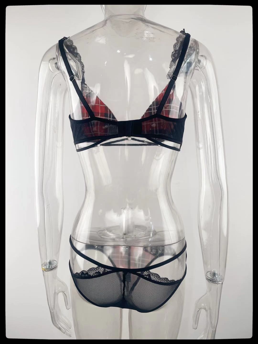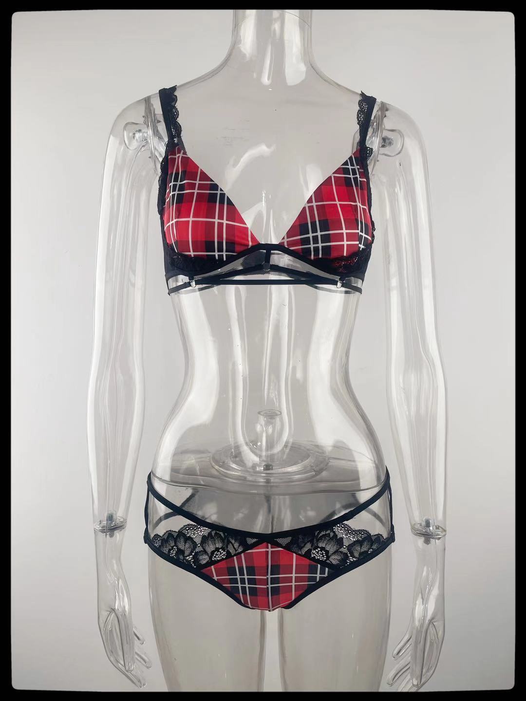 Ladies Fashion Plaid Sexy Underwear Three-point Style