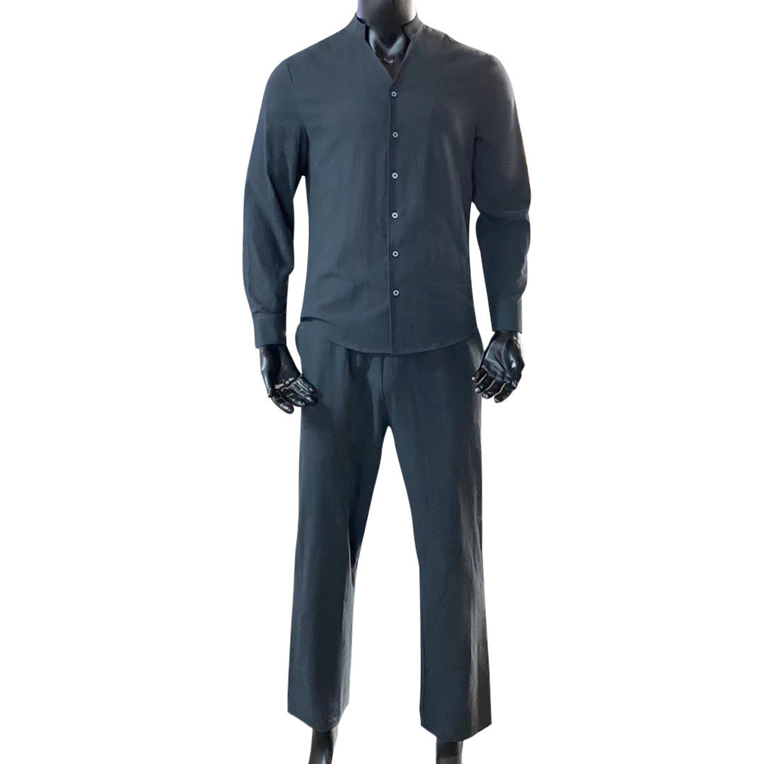 New Casual Long-sleeve Suit Men Long Sleeve Tops Shirt Two Pieces