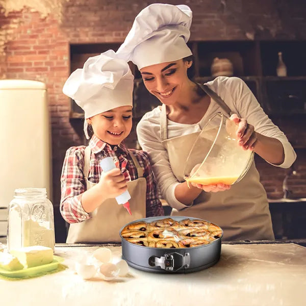 **Premium Materials & Nonstick Coating*:Made of food-grade stainless steel with BPA free nonstick coating; It’s safe to work with microwave oven. Moreover; the nonstick surfaces of the pans make it easier for you to take the cake out without damaging its structure or texture. Its spring latch offers a tight leak-proof seal.