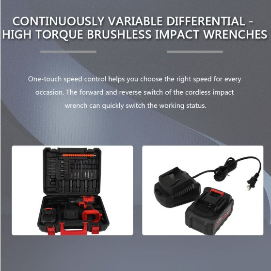 One Piece Portable 48V Cordless Impact Wrench, Cordless Drill Kit, Brushless Impact Wrench, Drill Kit With Batteries, Accessories And Toolkit For Car Tires, Electric Bikes, Garden Sheds