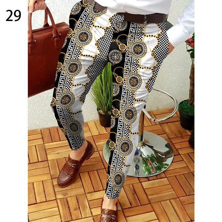 Printed Men's Slim Fit Fashion Casual Suit Pants Length