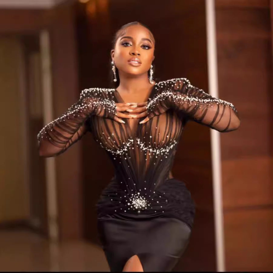 Sexy Deep V See-through Pleating Top With Hip Front Slit Formal Dress