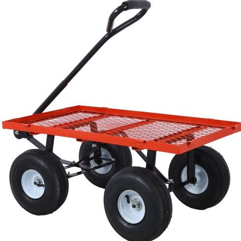 Steel Garden Cart, Steel Mesh Removable Sides, 3 Cu Ft, 550 Lb Capacity, Red