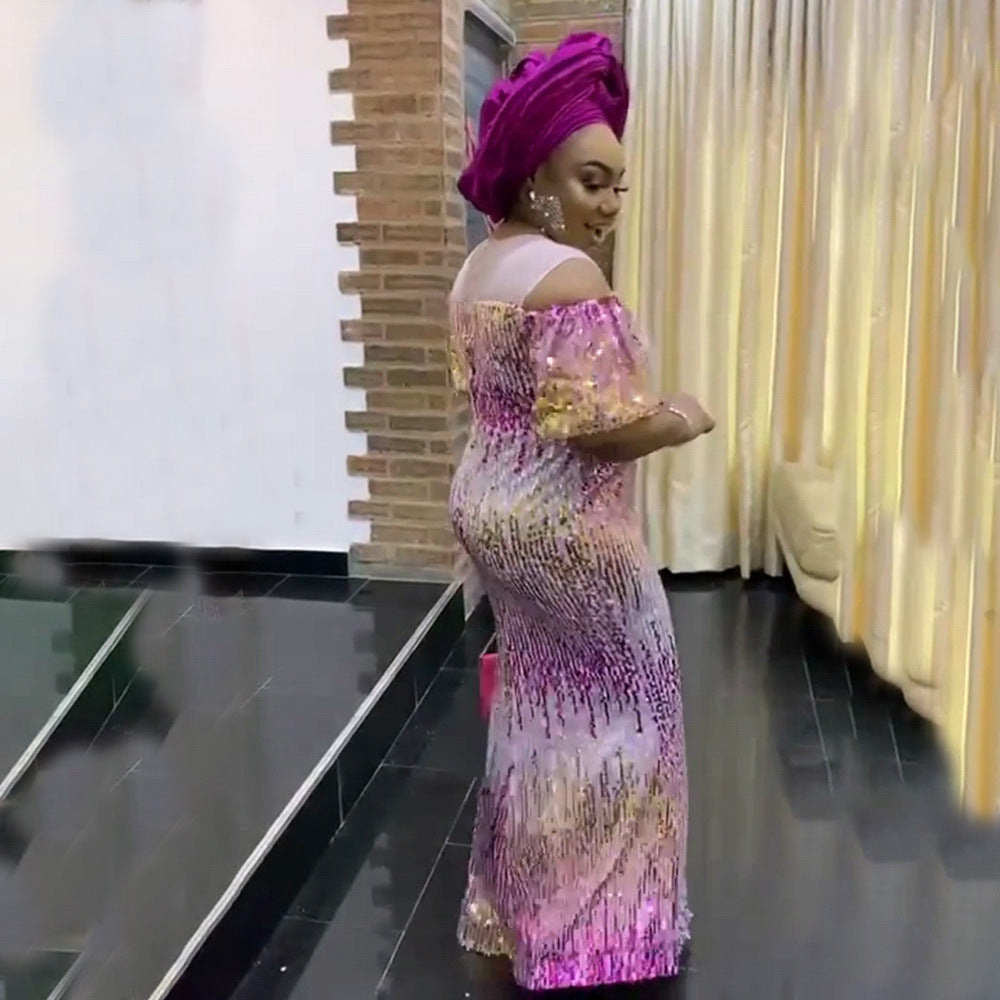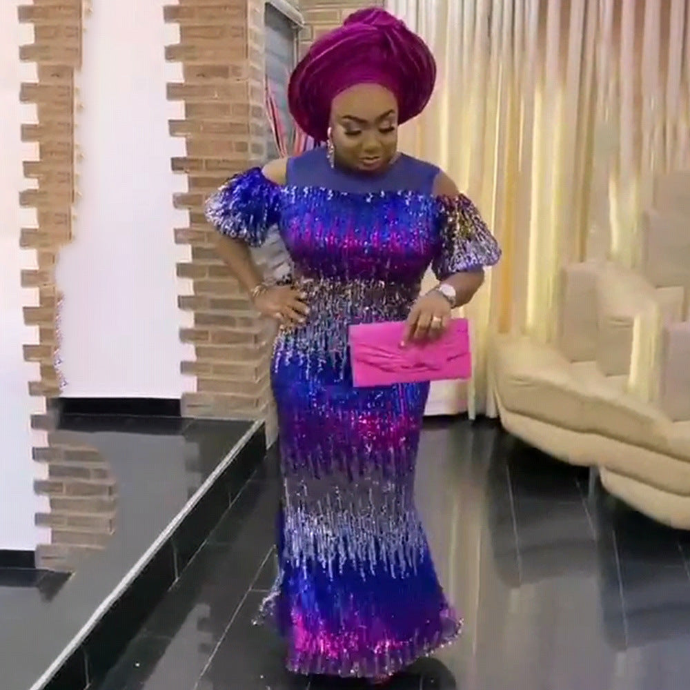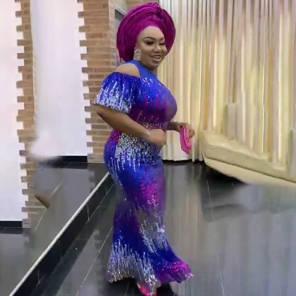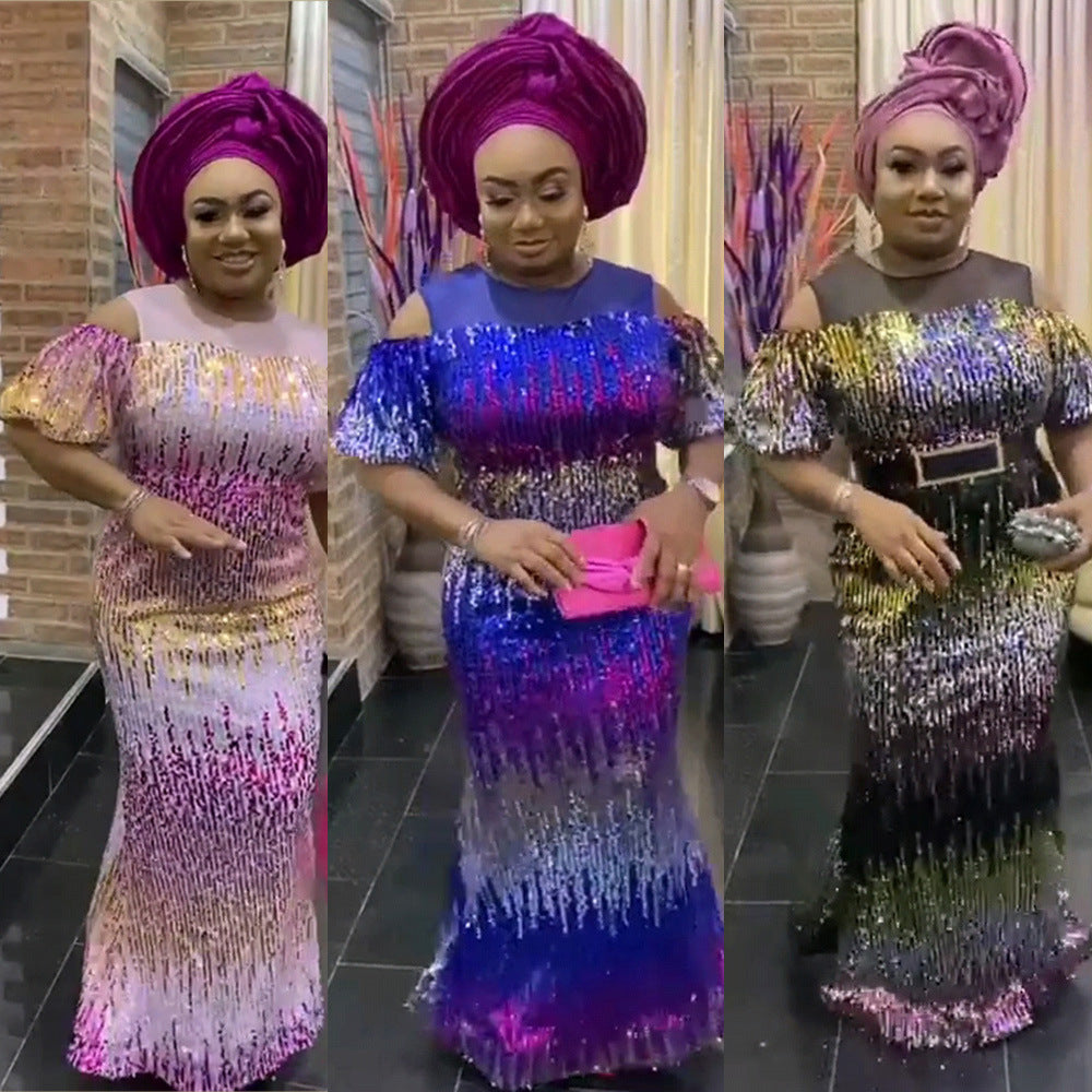 Stretch Color Changing Sequin Stitching Mesh Off-neck Fishtail Skirt