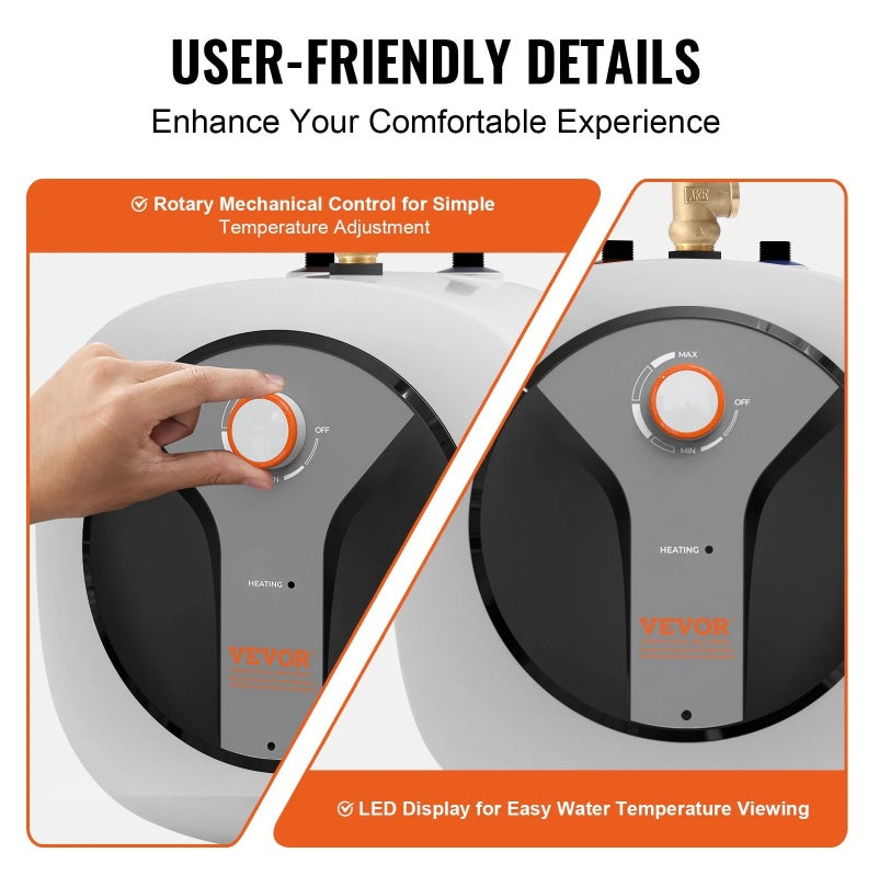 VEVOR Electric Mini-Tank Water Heater 2.5-Gallon Tank, 1440W Hot Water Boiler Storage, Safety Temperature Pressure Valve Easy Install, For Kichen Bathroom Restaurant, Shelf Wall Floor Mounted