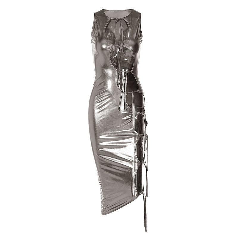 Women's Fashion Hollow Lace-up Solid Color Sleeveless Dress