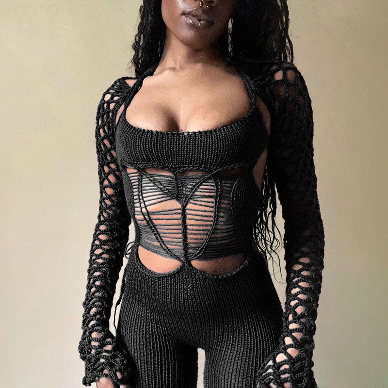 Women's Fashion Hollowed-out See-through High Waist Back Jumpsuit