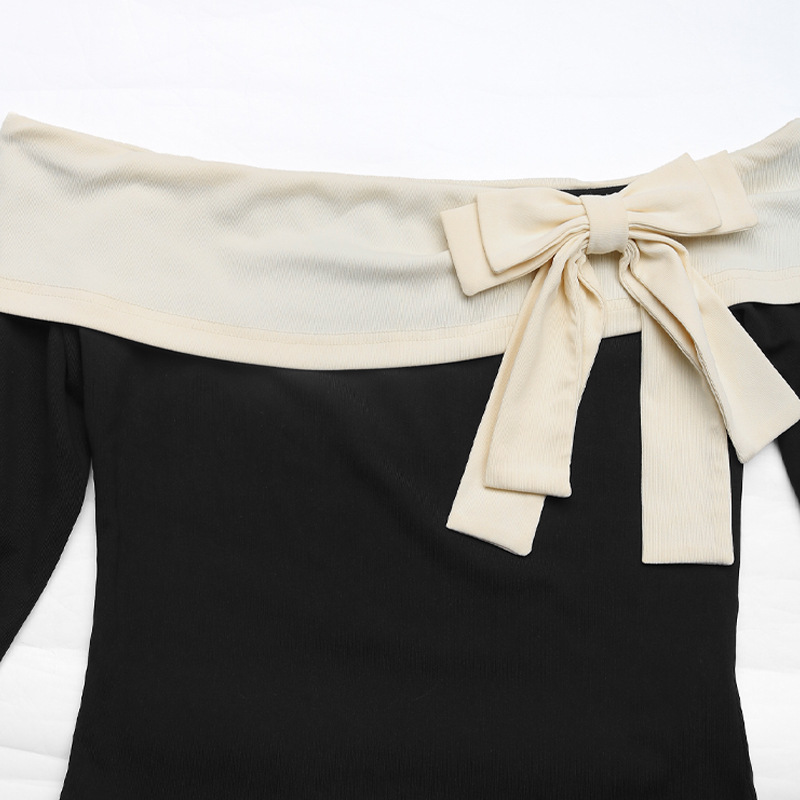 Women's Fashion Off-neck Bow T-shirt