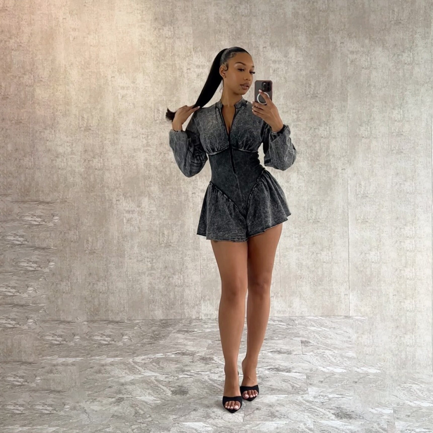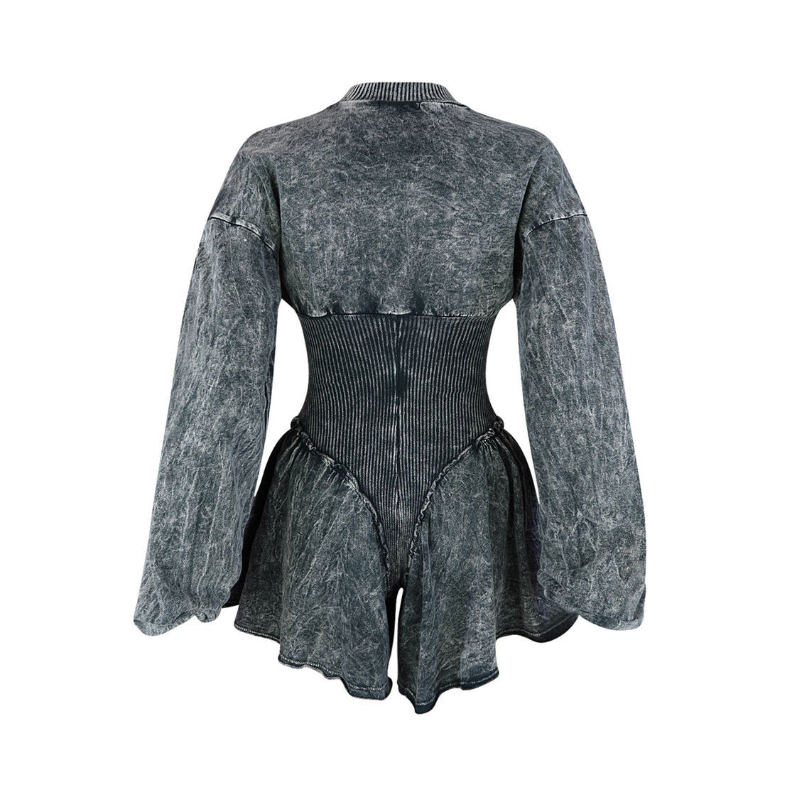 Designed with a distressed finish, this jumpsuit adds a touch of vintage flair to your wardrobe, making it perfect for casual outings, lounging, streetwear, or even layering up in cooler seasons.