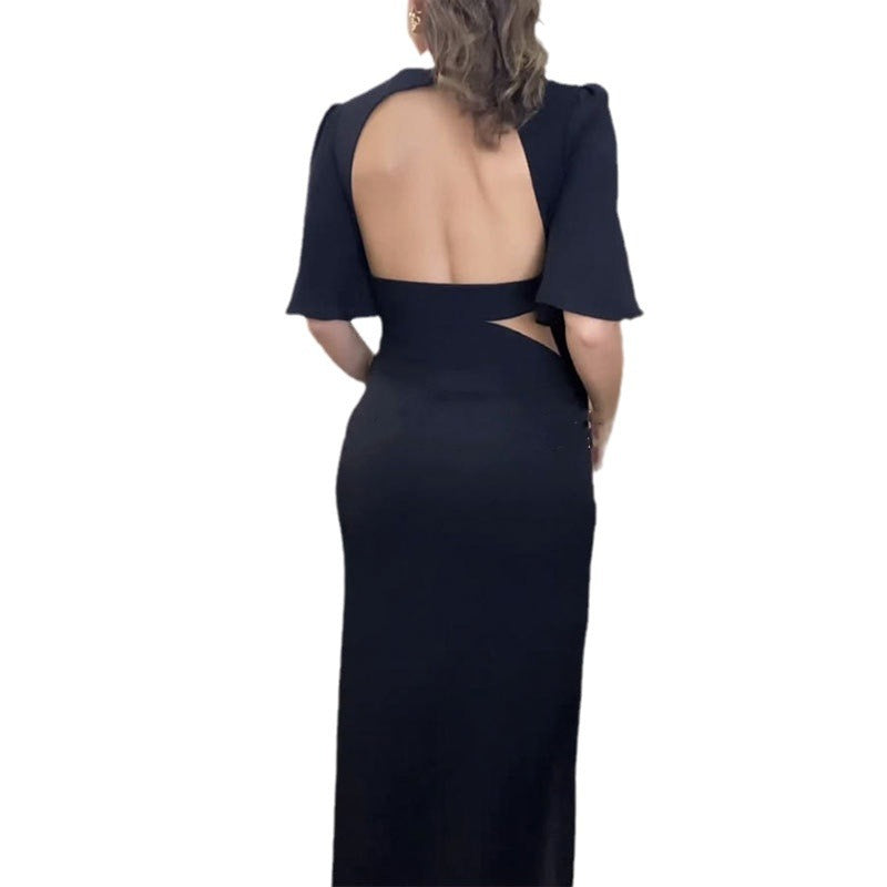 Women's Round Neck Backless Waist Trimming Dress