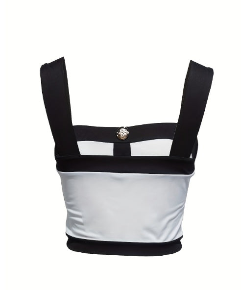 Women's Square Neck Sleeveless Color Blocked Versatile Slim Fit Vest