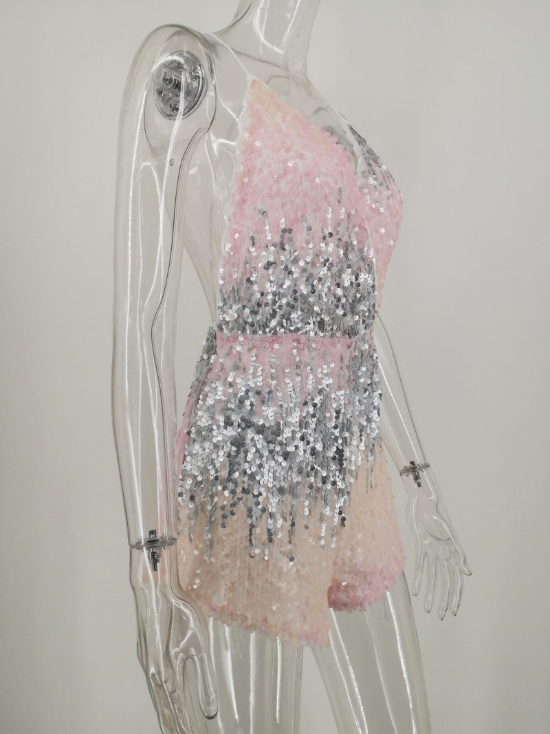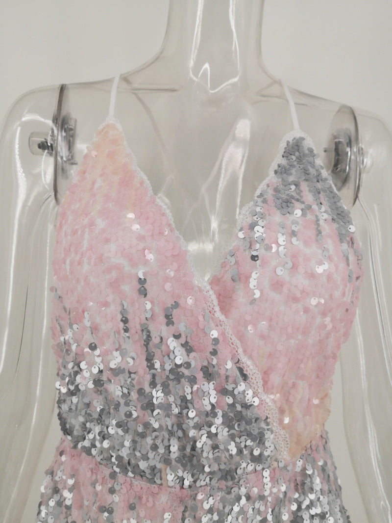 Women's V-Neck Sling Backless Sequin Jumpsuit